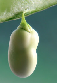 撕开豆荚,发现每颗蚕豆都顶着一个小皇冠,那小皇冠长在豆荚的里面。像这样