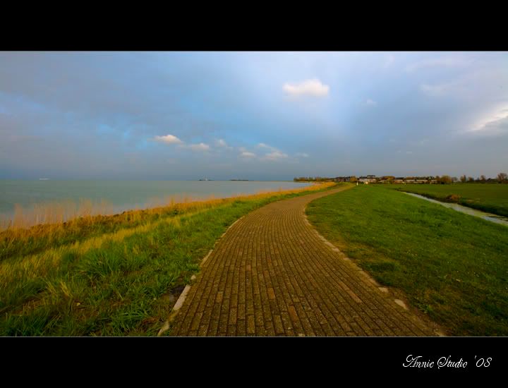 彩虹过后,兴奋了很久,我们想沿着堤坝绕Marken一周。