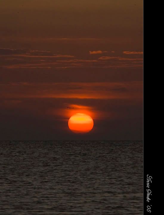 突然,栖息在海面上安静的海鸟一起起飞,飞向太阳,我们被这景象惊呆了。