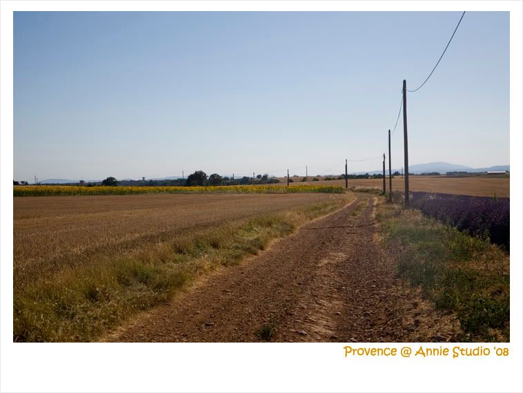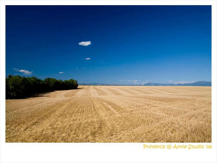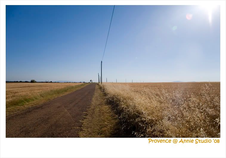 麦田,远山,白云,蓝天,木电线杆,还有电线划出的完美弧线,我才知道,普罗旺斯没有熏衣草也可以这么美。