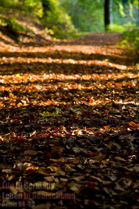 很快,眼前没了成片的绿色,树上的叶子开始泛不同的黄,泛不同的红,路也被叶子铺满了,踩上去软软的沙沙的
